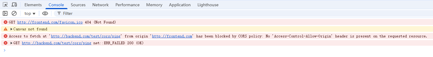 Access to fetch at 'http://backend.com/test/cors/ping' from origin 'http://frontend.com'