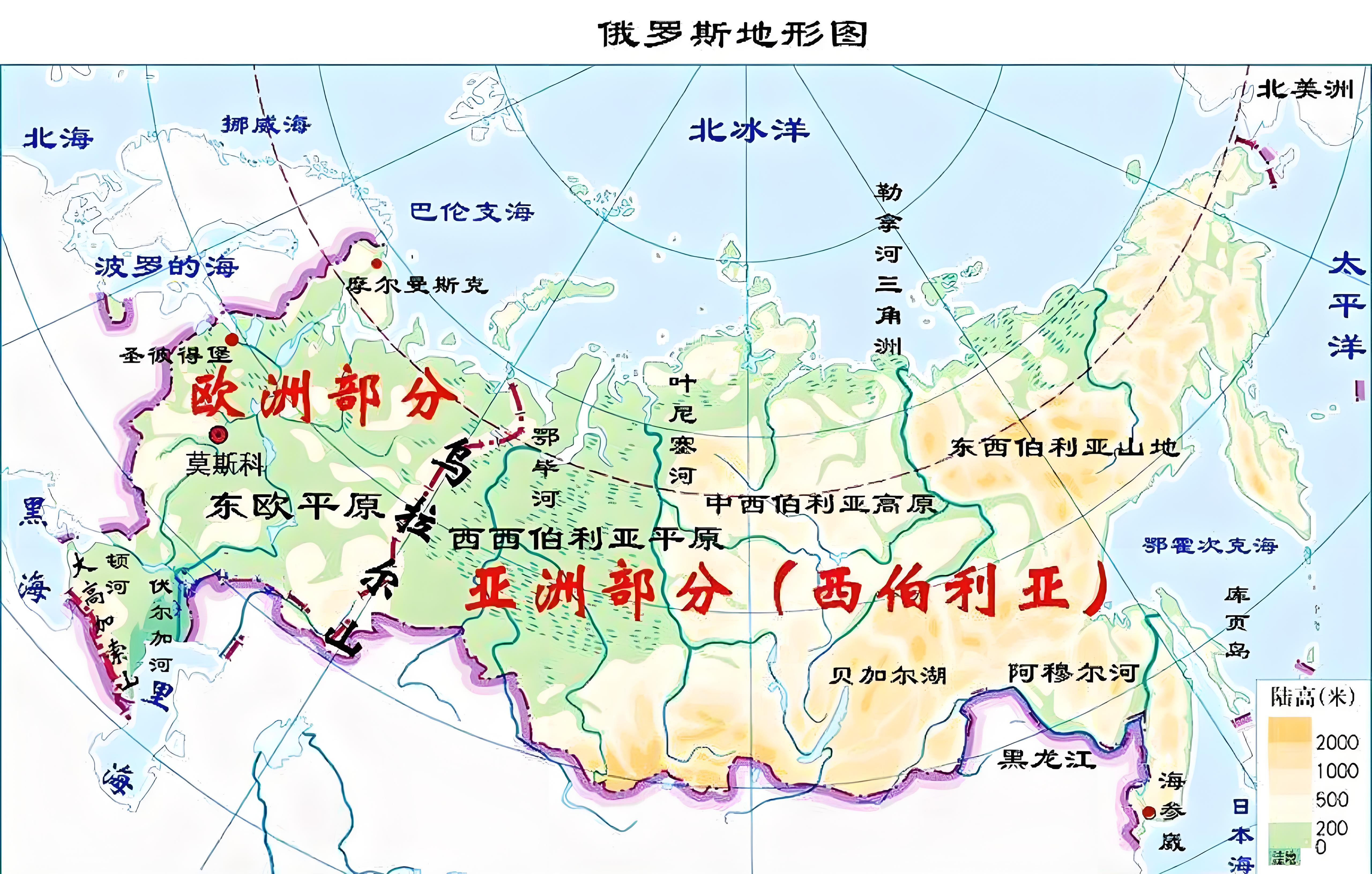 这里我们补充一下俄罗斯的地理知识,如下如所示,俄罗斯看似拥有 1700 万平方公里的领土,但事实上,乌拉尔山脉以东,是广阔的西伯利亚平原,寒冷、贫瘠、荒凉,导致俄罗斯 80% 的人口都居住在乌拉尔山以西,集中于东欧平原这 200 多万平方公里的土地上,这也就导致俄罗斯的文化认同,把自己当作欧洲人。