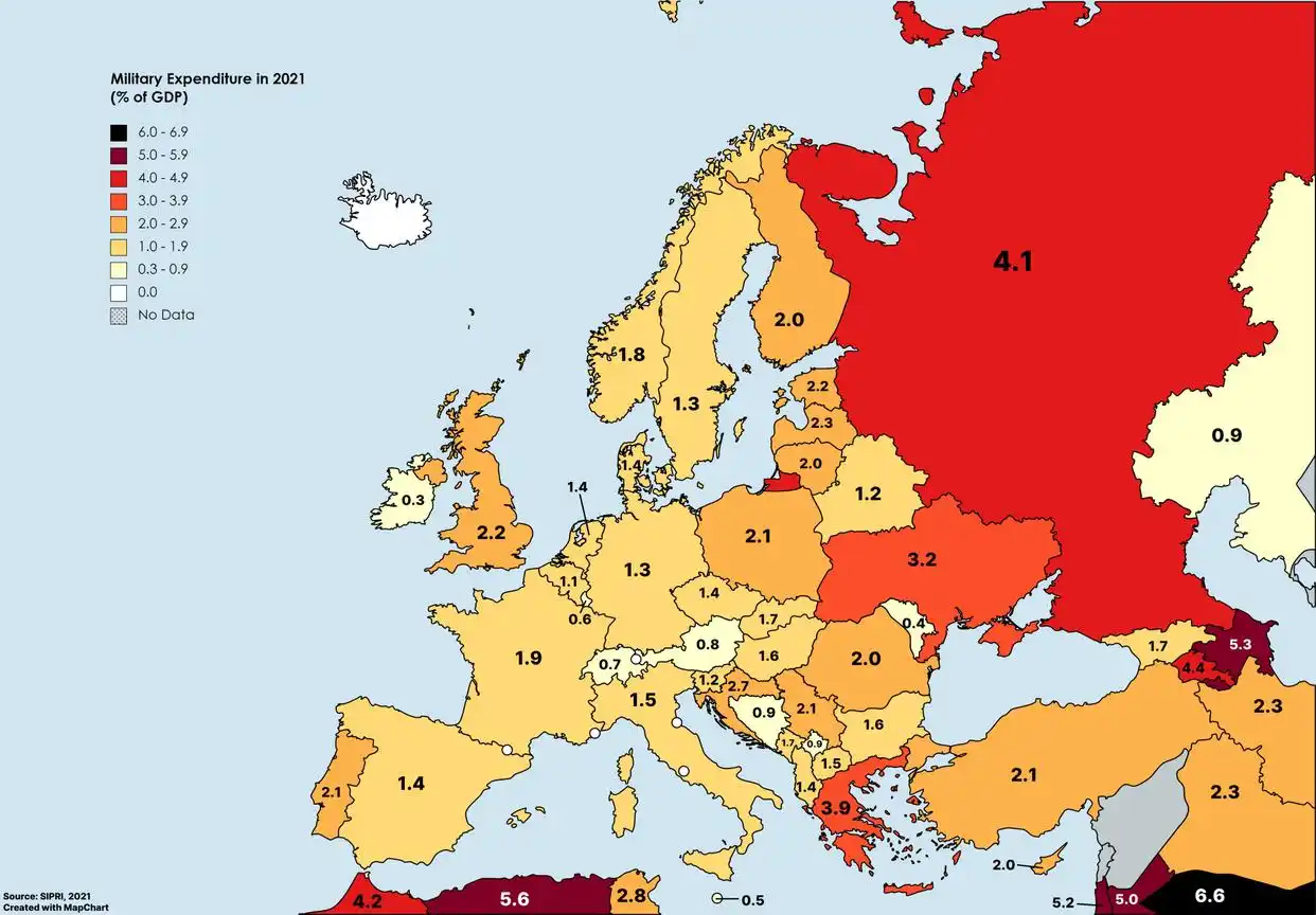 2025 年 3 月,美国特朗普政府暂停对乌克兰军事援助,并要求北约盟友大幅提升军费,把军费的 GDP 占比从 2% 提高至 5%,可见欧洲各国的好日子也过不安稳了